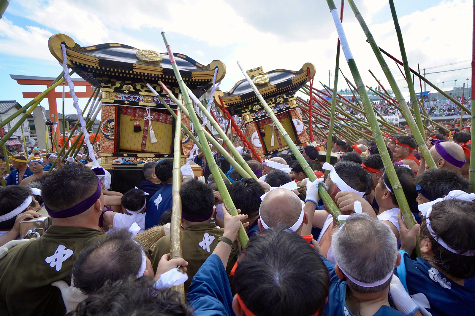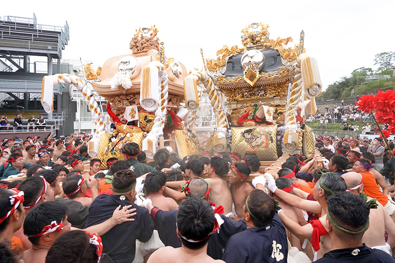 神輿合わせも豪快におこなわれ、祭りが大いに盛り上がりました。