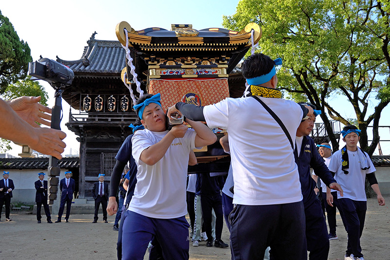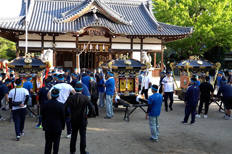 神輿庫より神輿を練りだし、神輿合わせの練習がおこなわれ。