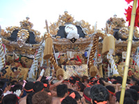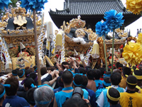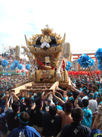 宵宮は晴天に恵まれ、よい祭りとなりました。宮入後は、多くの練り合わせが行われました。