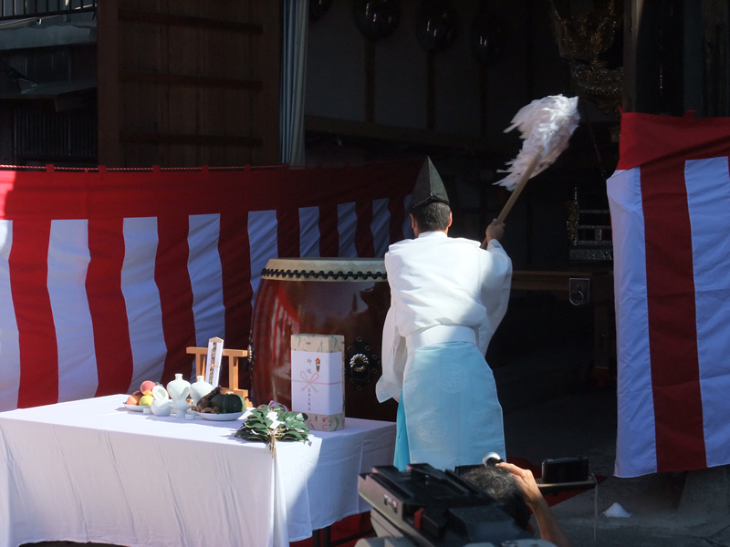 9月12日(日) 午前9時より、新調太鼓のご祈祷ならびに、お披露目が行われました。 製作は、真田太鼓店(真田辰次郎) 太鼓口径:2尺7寸3分(827mm) 太鼓胴長:3尺4寸8分(1054mm) 太鼓胴幅:3尺4寸6分(1048mm)