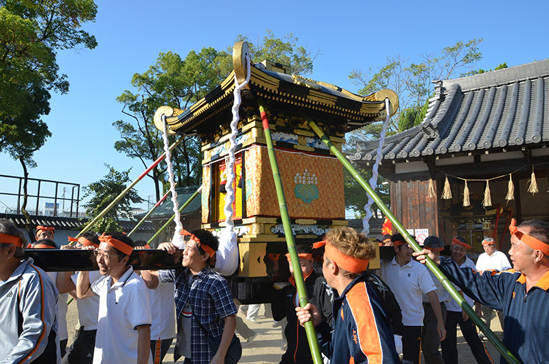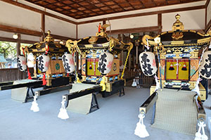 10月1日(火) 待ちに待った祭り月の到来です。 年番「八家」の氏子の手によって、神輿が拝殿に据えられ。 神輿奉据祭が執り行われました。