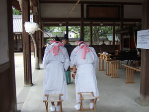 厳粛な神事に基づいておこなわれ、神輿の修築が始まりました。